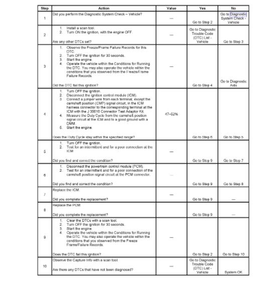 - An intermittent fault in the crankshaft position (CKP) circuits may cause the PCM to resync the cam and may set this DTC.
