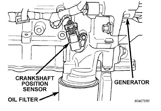 Remove the sensor. INSTALLATION - 2.0, 2.4, 2.4L Turbo Check O-ring for damage and lubricate the O-ring with engine oil before installing sensor. Use a twisting motion when installing the sensor. Install and tighten the crankshaft position sensor bolt and tighten to 9 Nm (80 ±15 in. lbs.) . Connect and lock the electrical connector to the crankshaft position sensor. Install the Structural Collar, refer to the Engine, Structural Collar Removal and Installation section. On 2.4L SRT-4, install the lower inner cooler hose to metal tube and tighten clamp. Lower vehicle. Connect the negative battery cable. https://www.2carpros.com/kpages/auto_repair_manuals_alldata.htm