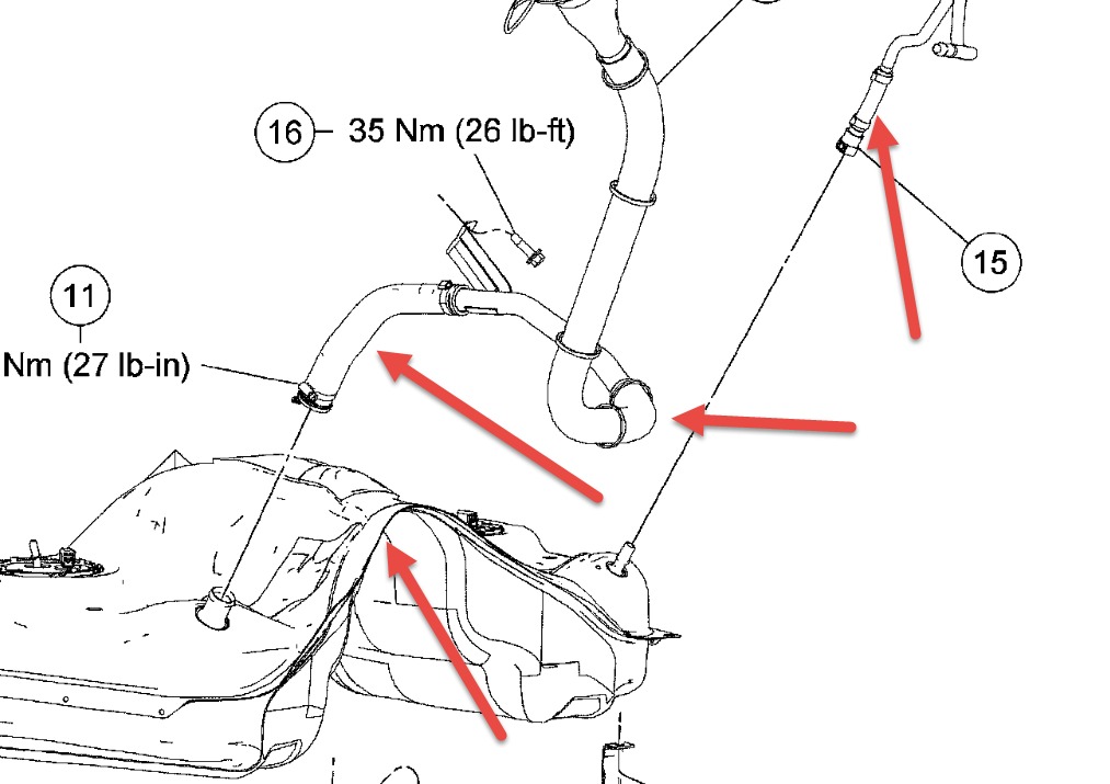 check for a kinked hose going to other side if ther e is one an dalso check for a kinked vent tube check the areas I've pointed out for crushing, kinking etc.