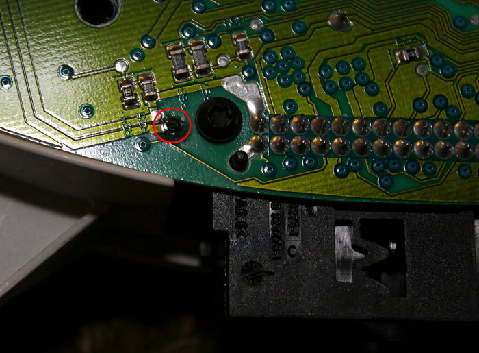 The screw next to the connection is one of two for the harness connector. When I have all the other screws out, the board is loose in the frame. It appears loose enough that the board should fall right out if the needles weren't there. Wish I could see the assembly process.