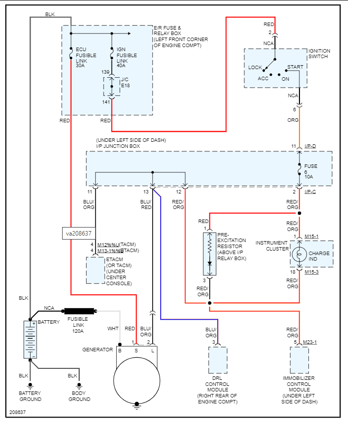 I have a 2005 hyundai terrecan. We are having issues with the battery not charging properly. The battery and the alternator have been checked by the battery people as the battery is still under warrenty. They say both are ok and there is a problem getting charge from the alternator to the battery. We had a mechanic service the car recently. He run a test and believes the harness has burnt out. The test results are...