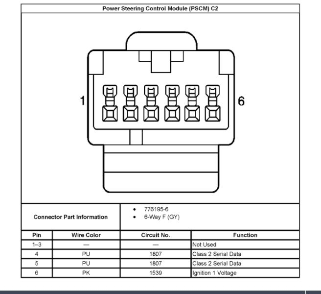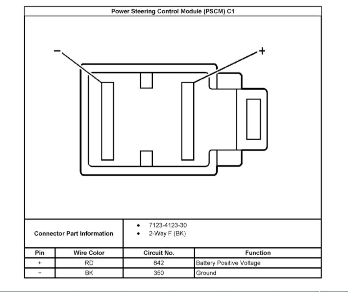 I attached a wiring diagram of the power steering as well as the pinout of the connector of the module for you.