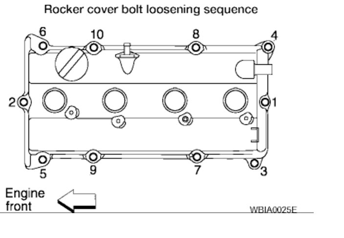 Rocker cover bolt tightening 1st step : 1.0 - 2.9 Nm (0.1 - 0.3 kg-m, 9 - 26 inch lbs.)