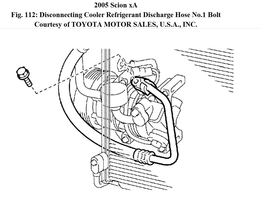 a. Remove the bolt and disconnect the cooler refrigerant discharge hose No.1 from the w/ pulley compressor assy.