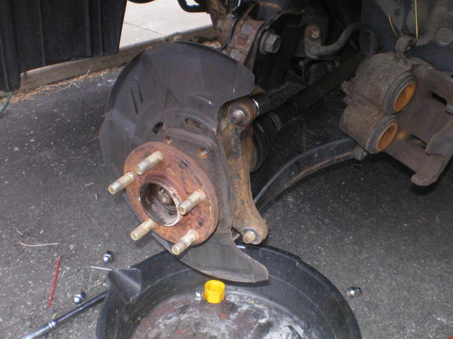 On the front left wheel, I have removed the tire, brake caliper, spindle nut, the brake rotor and the 4 screws that mount the hub bearing.