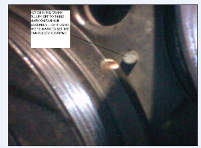 here's from our tips page see pics also oh if you belt broke it bends valves too!