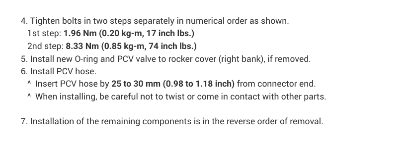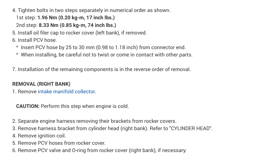 I plan on doing both valve cover gaskets on this vehicle listed above. I would like the step by step procedures along with torque specs please.