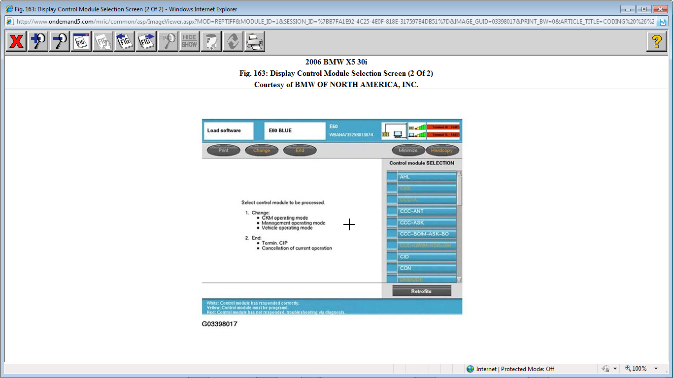 Fig. 163: Display Control Module Selection Screen (2 Of 2) Courtesy of BMW OF NORTH AMERICA, INC.