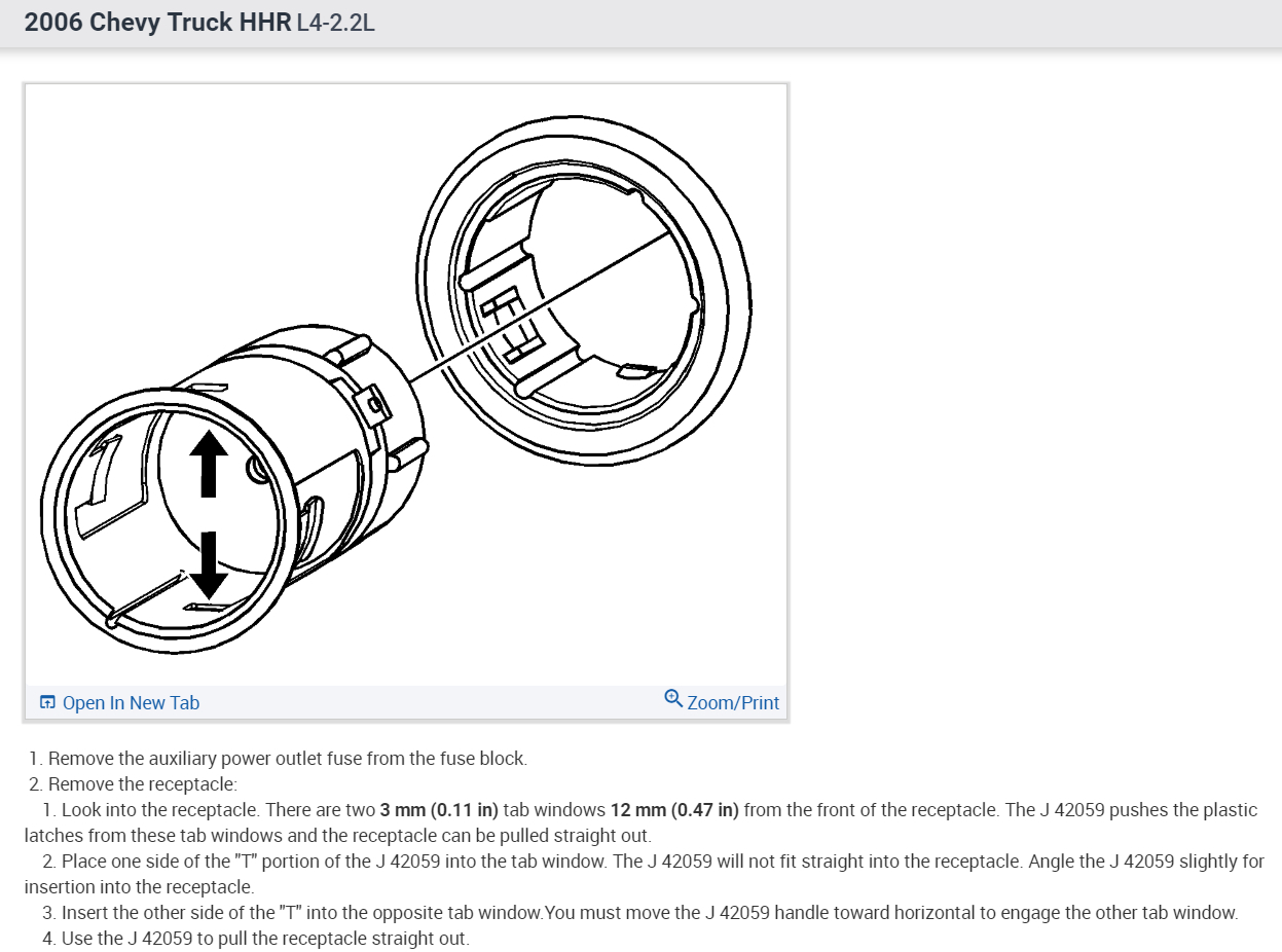 They make a special tool for it but most people just use a Dremal tool. Here are the instructions on how to change the lighter out with the fuse location in case you pop it when doing the job. Check out the diagrams (Below). Please let us know if you need anything else to get the problem fixed.