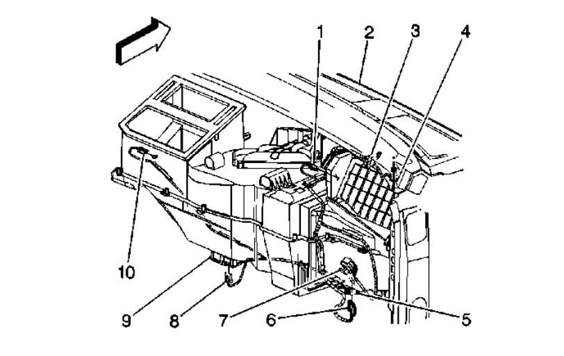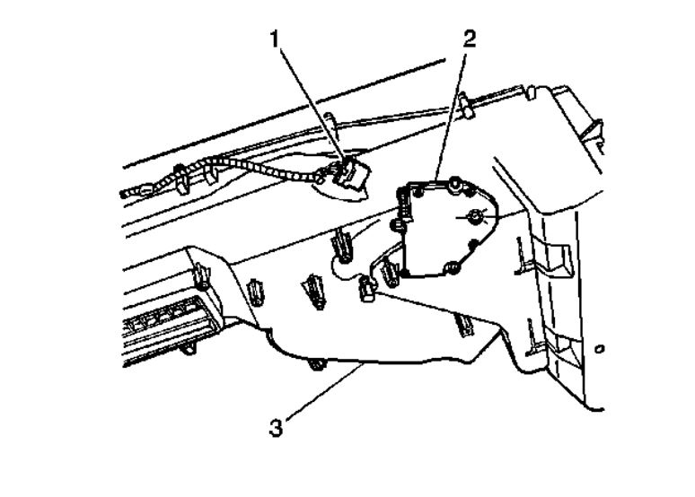 5. Remove the left air temperature actuator (2) from the HVAC module assembly (3).