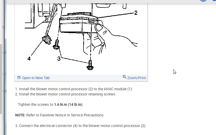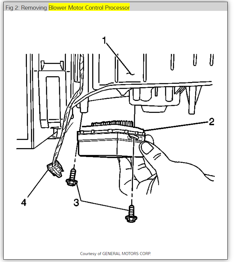 Technicians are to replace the blower motor control module, also called the Linear Power Module (LPM), with the P/N listed below. Refer to either the Blower Motor Control Processor Replacement or Blower Motor Processor Replacement-Auxiliary procedures in SI. After replacement of the blower motor control module, the customer may notice a slightly higher than expected blower motor speed at any of the blower speed settings.