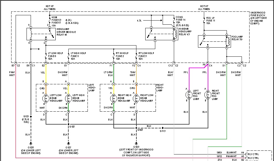 Did you check for voltage, anywhere? Use a voltage tester. Any applicable trouble codes? Check the fuse circuits in the diagram for voltage. The headlamp driver module relay is for low beams. The bcm sends voltage to coil side of that relay in order to energize.