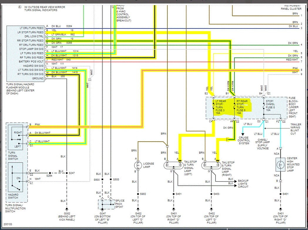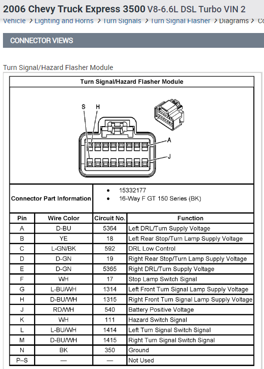 Okay, just so I understand. Power makes it to fuse 14 (signal/hazard module fuse), but there is no power to the red/white wire to the module? (see pic 1 above).
