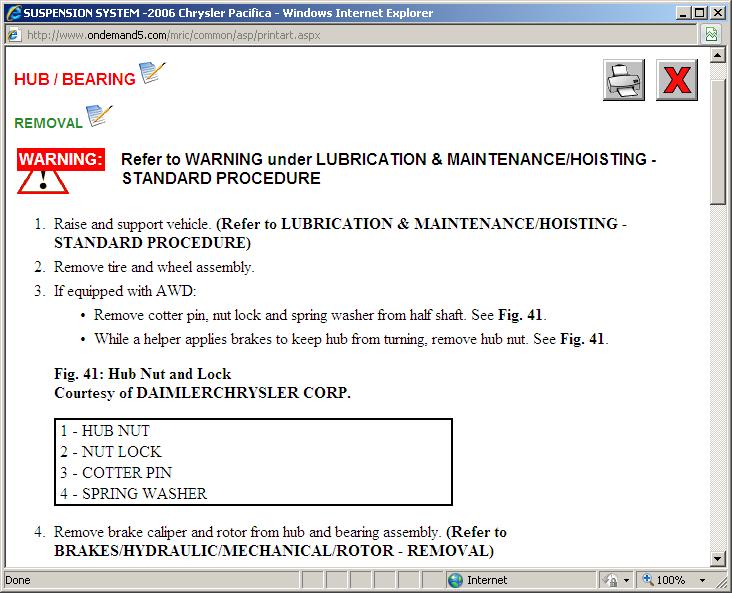 I cant get access to the exact tools like what size sockets etc.But i can get you the replacement instructions i need to know if you have all wheel drive and if you have rear disc?