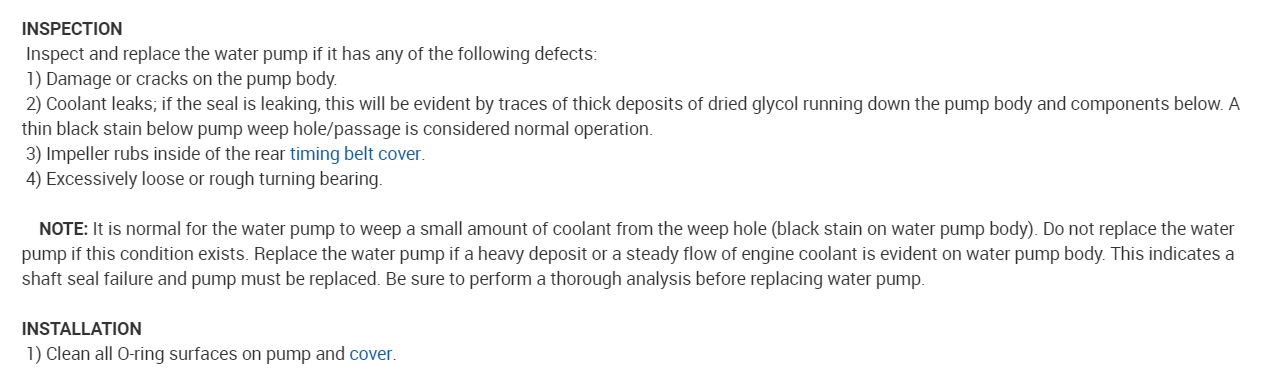 Here are the instructions on how to change out the water pump with the timing belt instructions as well since the timing belt needs to be undone or replaced when doing the job. Check out the diagrams (Below). Please let us know what happens.