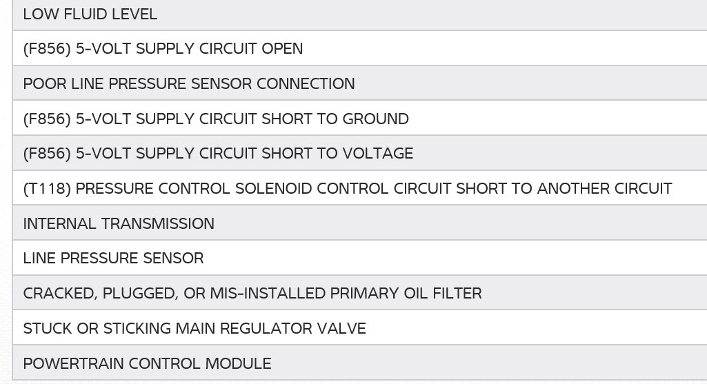 868 is low line pressure and 218 can be from idling to long with in gear. see pics for possible causes and have a second opinion by a qualified trans shop. they may be right but always get a second opinion from an independent. Of course if pan was removed then they probably saw some junk in there that shouldn't have been.