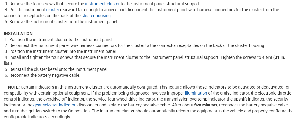 Next, had it to Dodge dealership, after technician going through it, determined that the instrument cluster is bad and needs replaced. an expensive $950.00 retail.