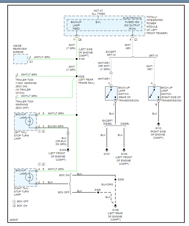 Contrary to what you believe about that module, it is full of electronics and is accessed by the scanner just like an Engine or Body Computer. The reason I know how this one works is when the truck was completed, it had no backup lights, no motorized pedals, and no 4wd lights on the dash. There is no relay anywhere for the backup lights, . . . until I added one. The switching is done electronically, and that is always less reliable than a simple mechanical switch. By testing the circuit is how I know that is a 5 volt signal that gets grounded out by the backup light switch. That is a standard computer sensor voltage. Those circuits need to have a supply voltage that is higher than what they're using for sensing so they can't work with 12 volts. Only a mechanical switch can work with any voltage.