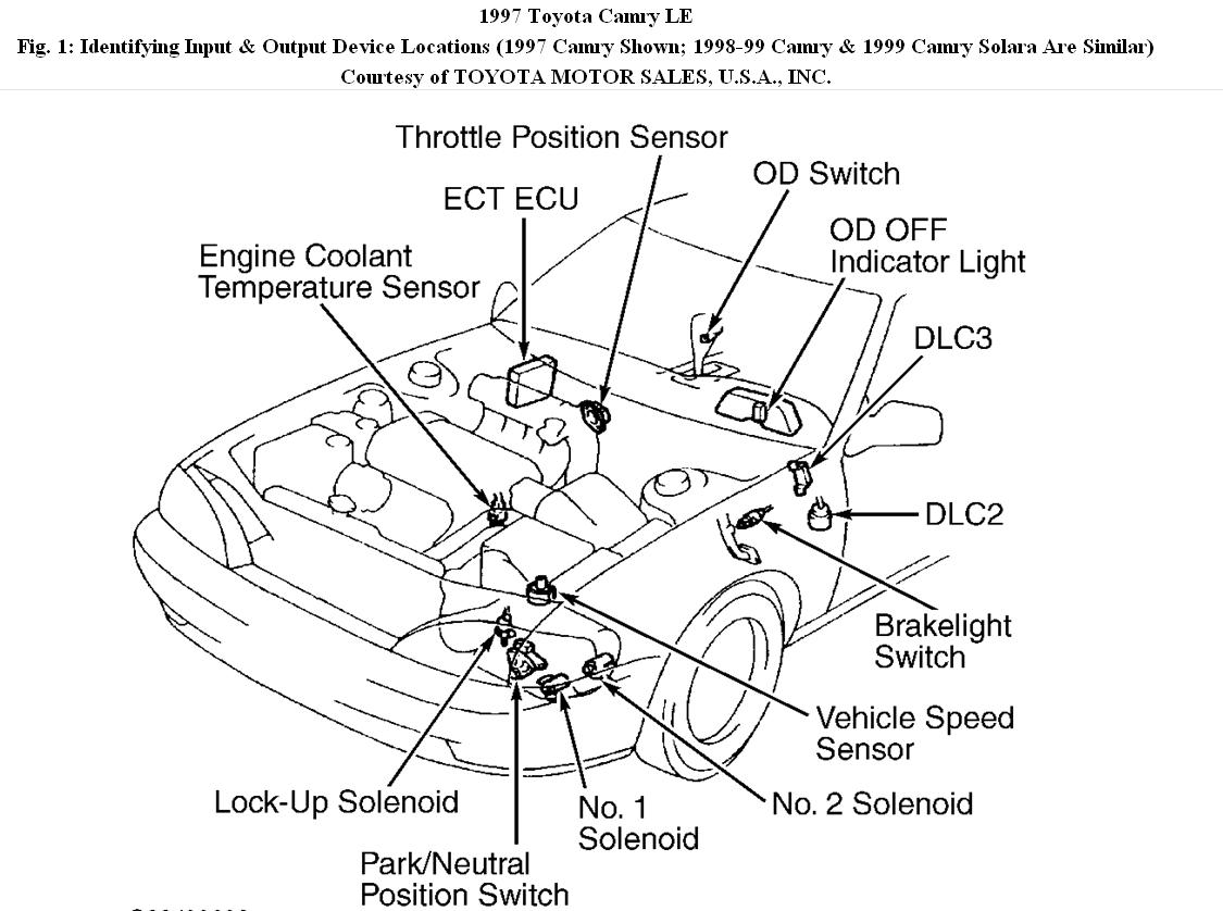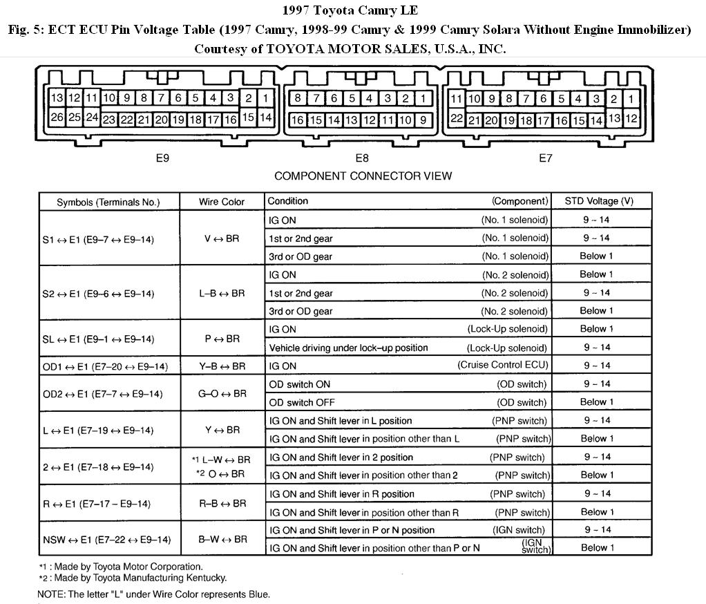 1. Access ECT ECU. See Fig. 1. Using ohmmeter, check resistance between terminal SL and body ground with connector removed from ECT ECU. See Fig. 5.
