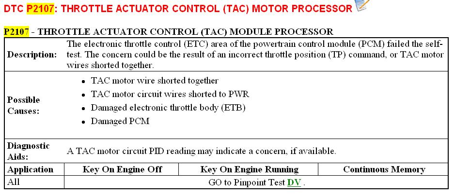 P2107 is a fault with the TAC.