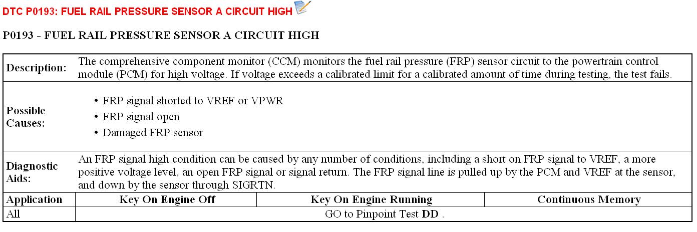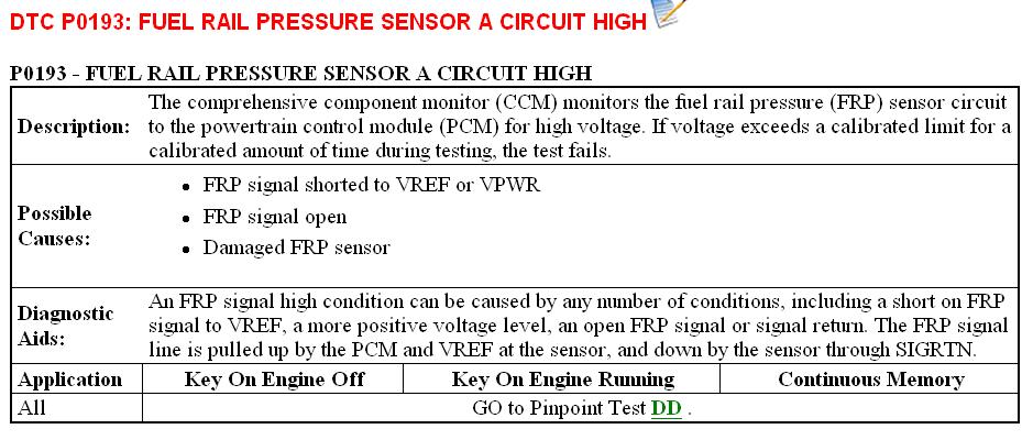 DD3 CONTINUOUS MEMORY DTC P0190, KOEO AND KOER DTCS P0192 AND P0193: CHECK FRP SENSOR FOR FUEL LEAKS