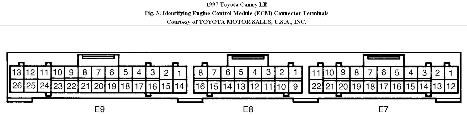 Fig. 3: Identifying Engine Control Module (ECM) Connector Terminals