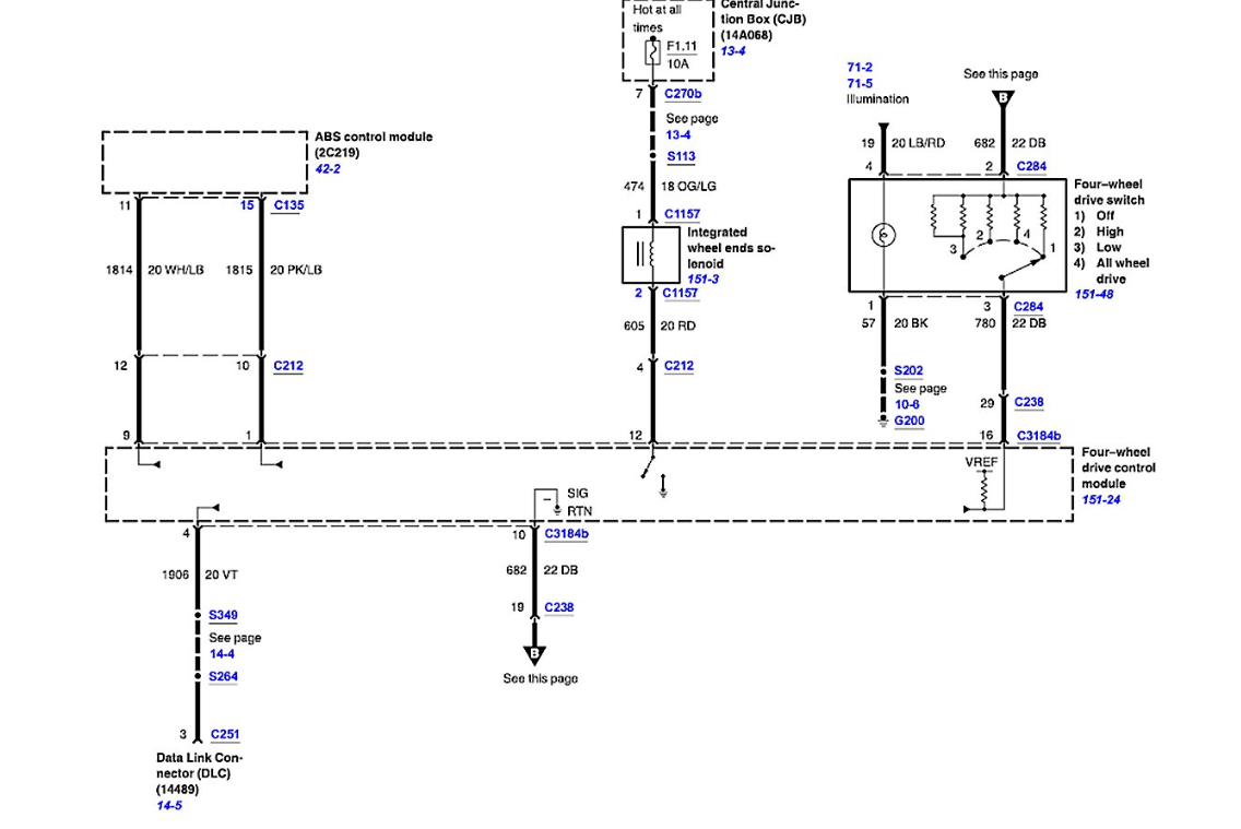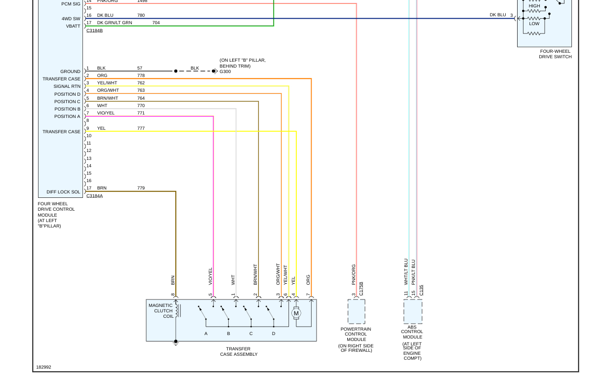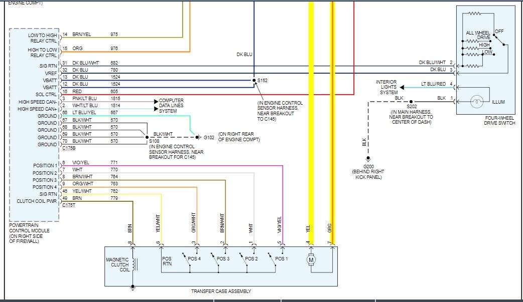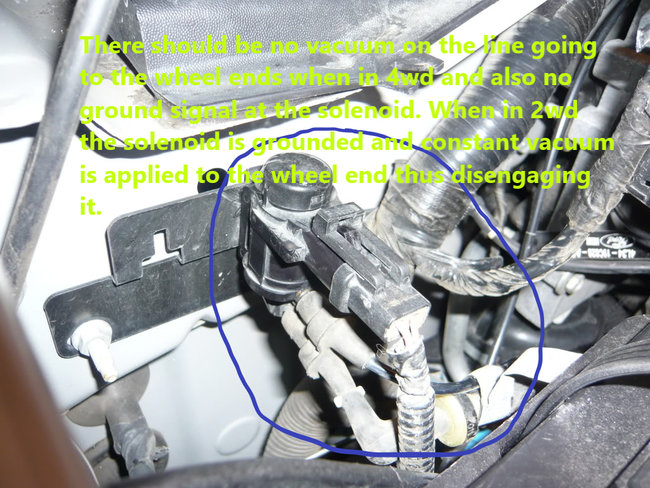 The mode select switch communicates the operator's choice to the 4x4 module (PCM). The 4x4 module (PCM) then controls the transfer case clutch, transfer case motor and integrated wheel ends (IWE's) as necessary. If the vehicle is not responding to the operator's intentions, systematically check the necessary inputs and outputs of the 4x4 module (PCM), components of the transfer case, IWE components and halfshafts. Check all circuits for opens and shorts to power or ground.
