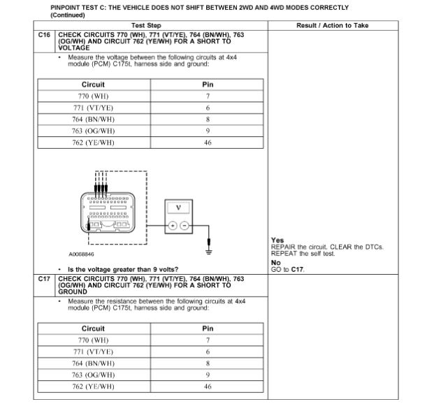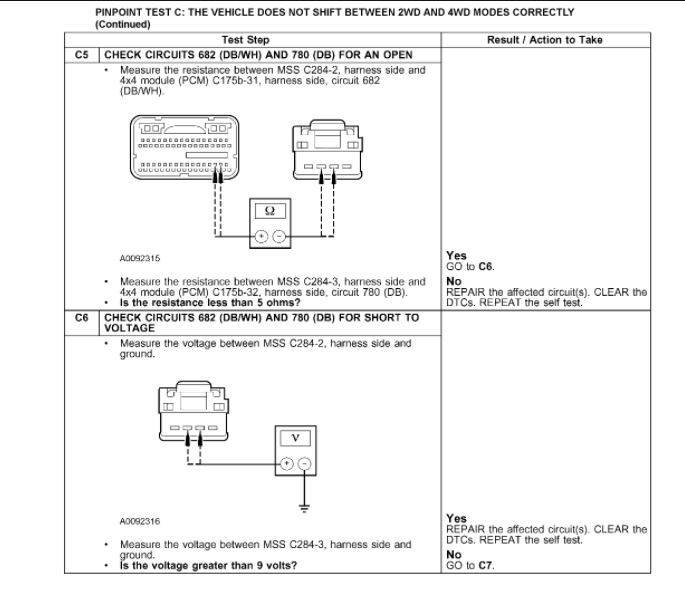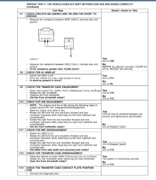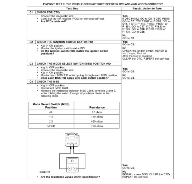 Pinpoint Test C: The Vehicle Does Not Shift Between 2WD And 4WD Modes Correctly