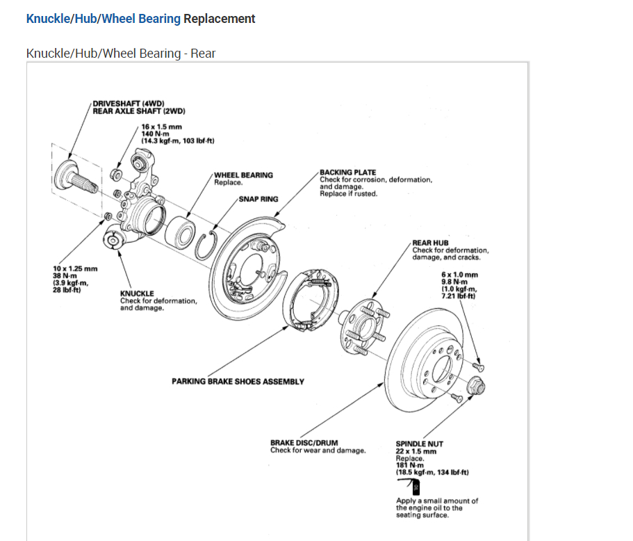 Rears are fairly easy. Remove the caliper and rotor. Remove the center cap and nut. I believe it is a 30mm nut. Remove the hub assembly and install the new one
