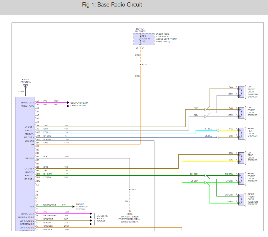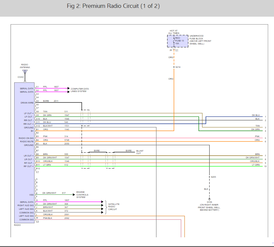 Hello, there is an AMP fuse #38 that needs to be checked here is a guide to help you and the fuse location with the radio wiring diagrams to help you see how the system works.