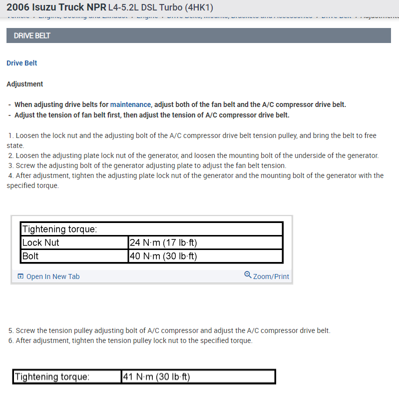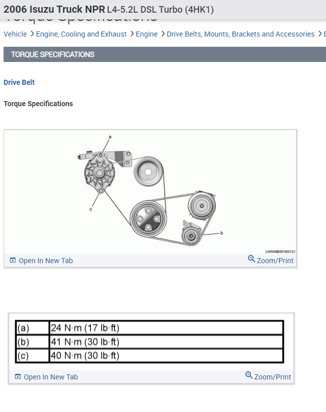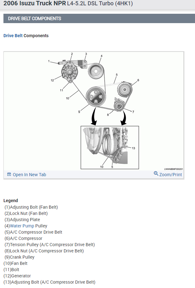 Where can I find an engine repair manual for a 2006 Isuzu NPR Diesel? I need a diagram to show how to line the drive belts up.
