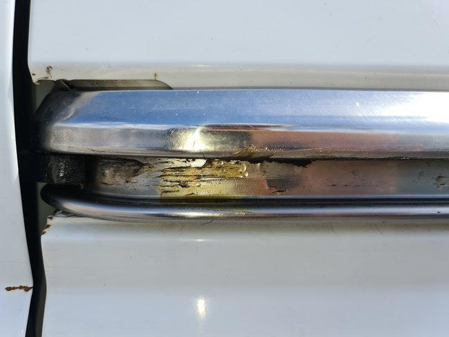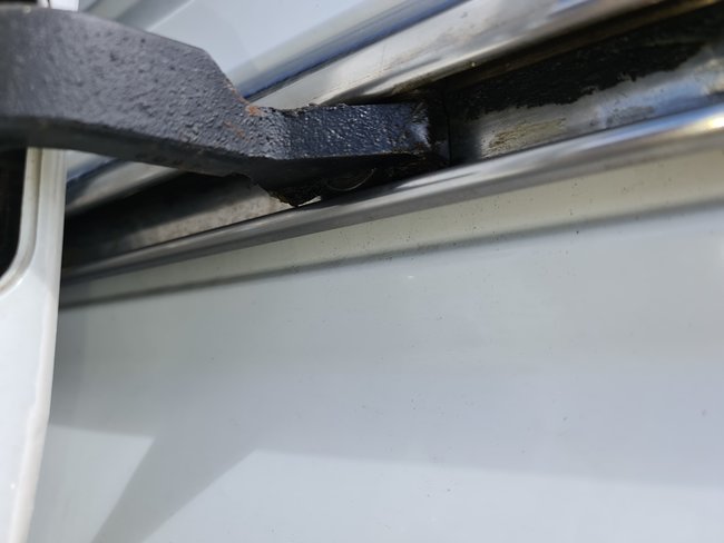 So, if the top of the door is not fully closing then either something is bent, or the hinges need adjusting.