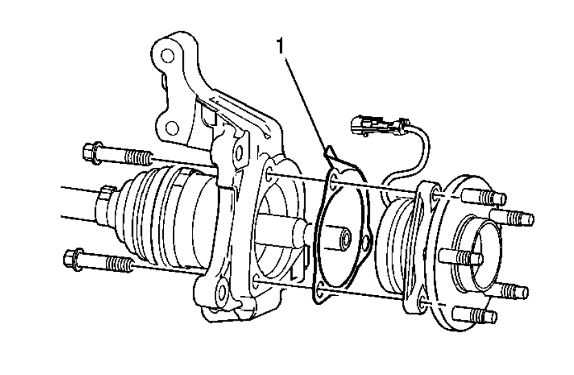 Install the wheel bearing/hub assembly and spacer (1) to the steering knuckle and wheel drive