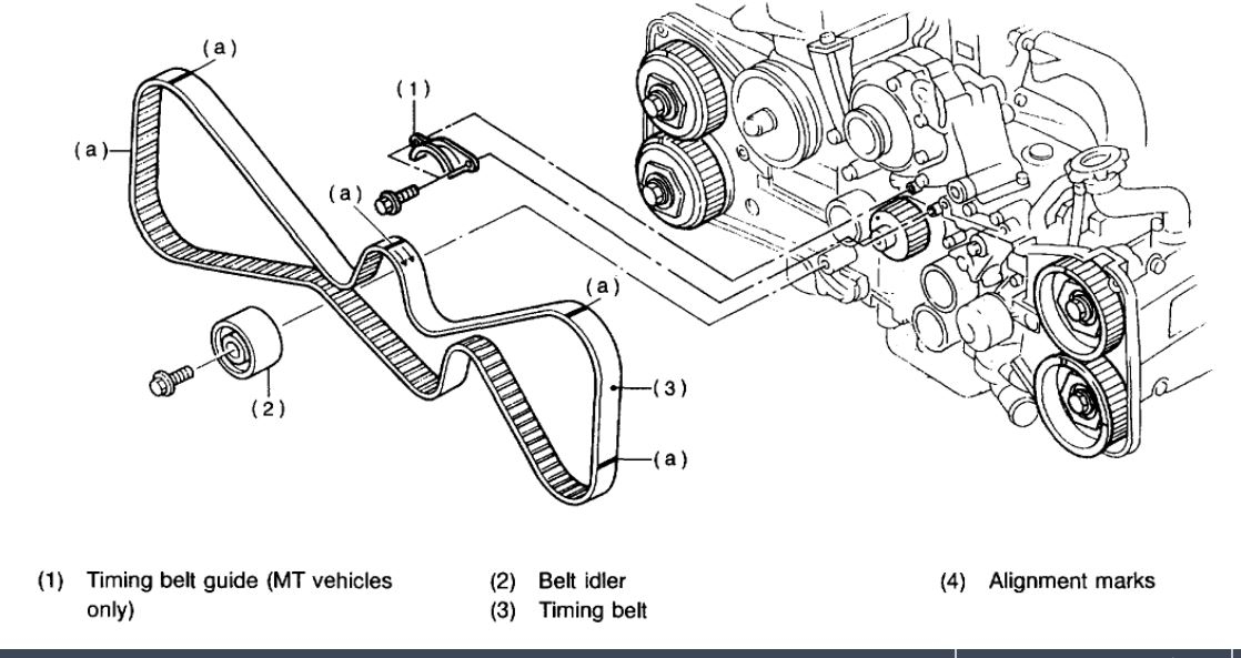 1) Remove timing belt guide. (Manual Transmission (MT) vehicles only)