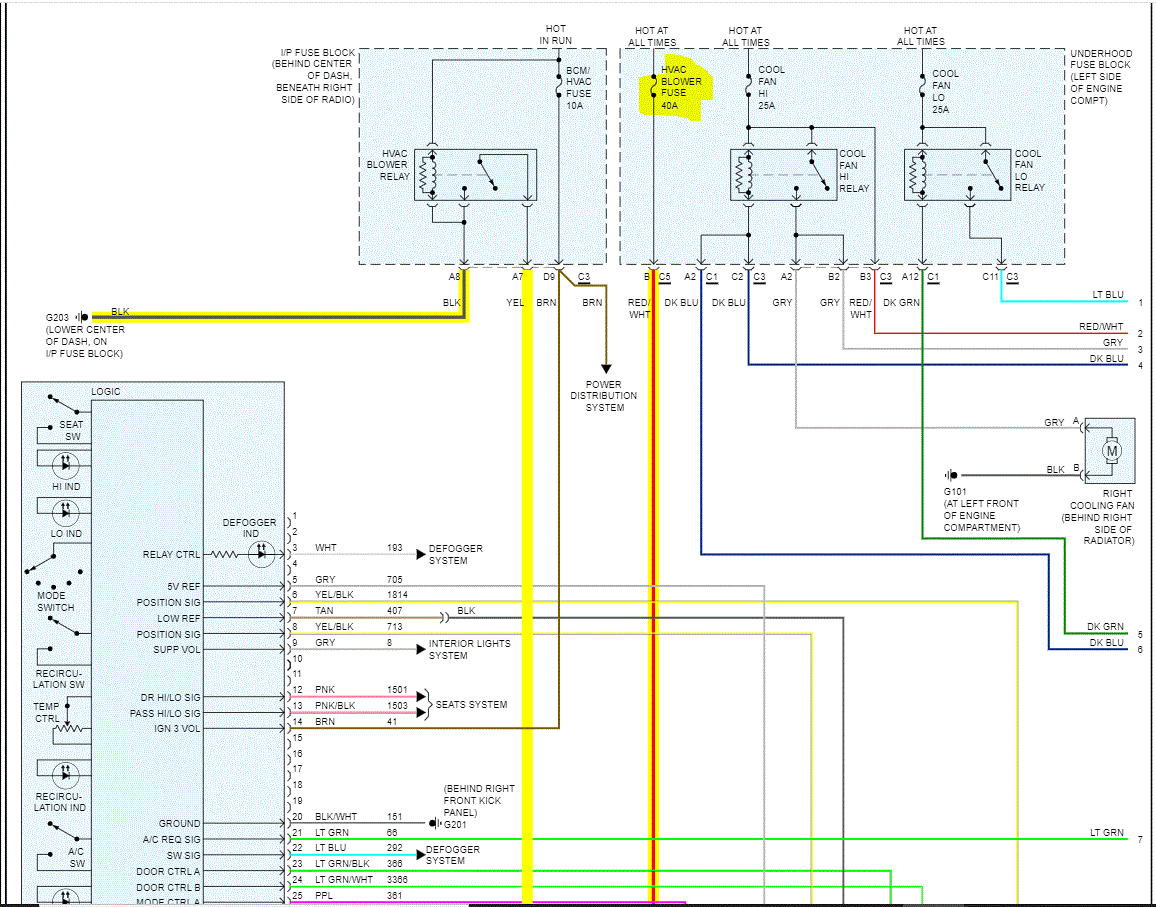 If you look at the pics below, I attached the wiring schematic and highlighted all wiring involved.