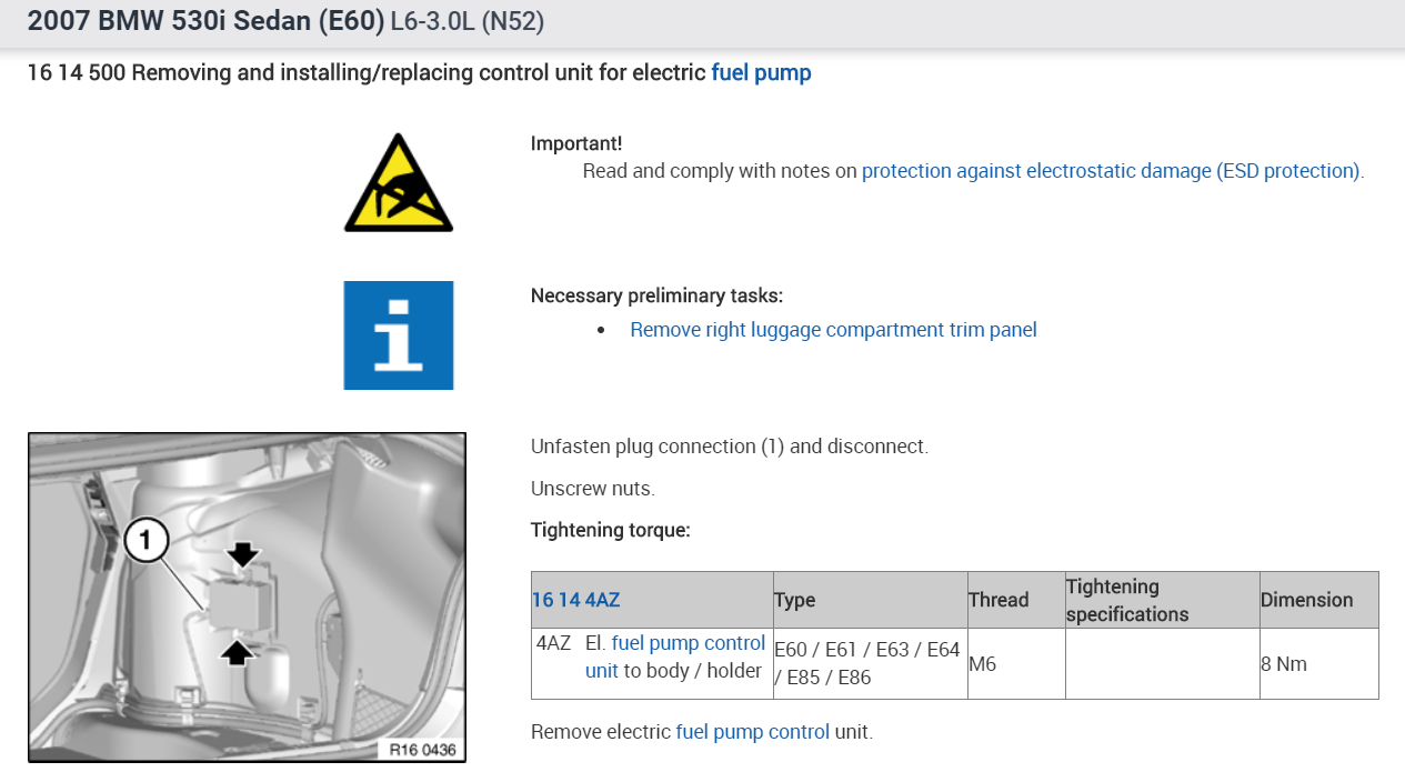 After replacing the left side (driver side) fuel pump (again, not OEM), I started the car ran fine. I will add that the car had to be jump started because the battery died, I can’t recall why it died but it died. Nonetheless, I let it run to charge the battery and it ran beautifully. After about 15 minutes the car began to run rough (as if it was not getting fuel) and very quickly shut off. It only took seconds for it to go from running fine to running rough and finally shutting off. I tried starting the car and nothing. All I got was a crank but no start. My initial thought was that the NEW fuel pump had just failed. We all know that has happened. I further “validated” this by engaging the ignition and cranking the car and did not hear the fuel pump prime or run. So, I epoxied the hair line crack on the known good running old fuel pump overnight. The next afternoon with the epoxy more than cured, I installed the old fuel pump and I get the same crank but no start. No check engine light displayed.