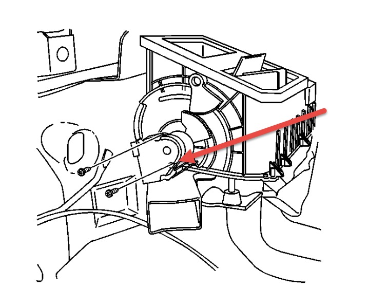 - Line up the heater/defroster lever with the mode actuator cam slot.