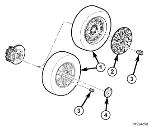 3. Remove wheel mounting nuts (3), then tire and wheel assembly (1).