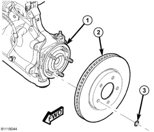1. Clean rotor mounting face of hub and bearing (1) to remove any dirt or corrosion.