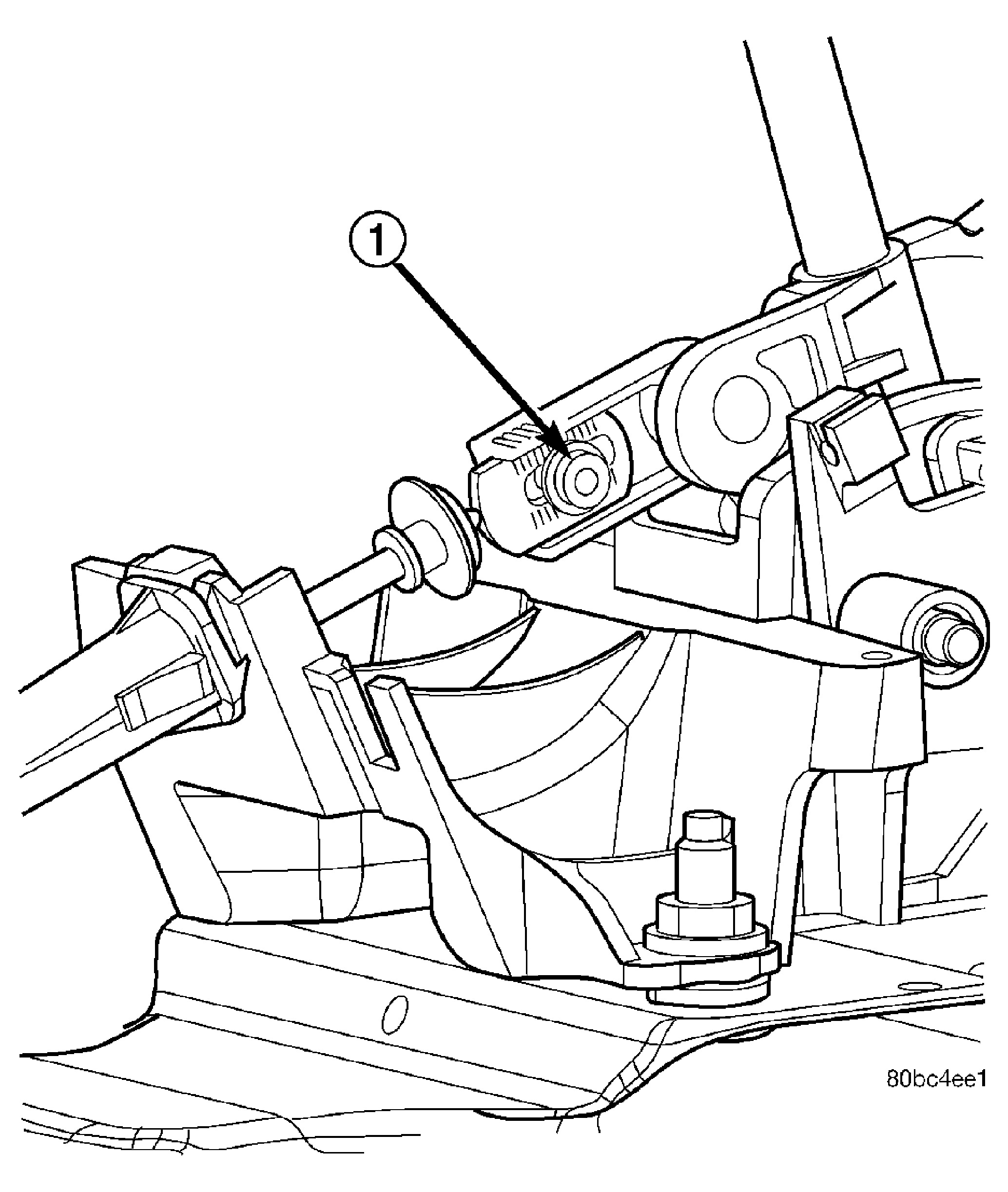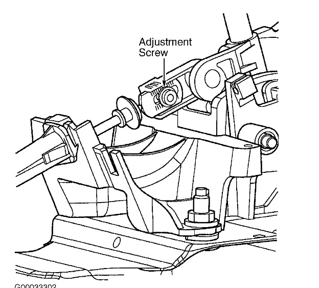 Now, place the gear shift lever in park. Loosen the shift cable adjuster screw. Verify the transmission shift lever is in PARK. Tighten the adjustment screw to 70 inch pounds.
