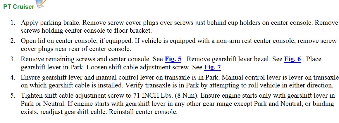 You need to first remove the shifter handle. There is a set screw on the shifter lever. Remove that and the shift handle will come off. Next, you need to remove the center console and the shift cover. Once that is removed, you can see the shift cable. There is an adjuster on the side of the cable. See pic.
