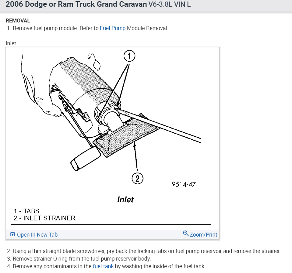 Again, this slowly-dropping fuel pressure while you're driving is commonly caused by the fuel pump on GM vehicles, but Chrysler pumps fail in a different way. This gradual loss of fuel pressure on Chryslers is caused by that strainer in the tank. For most models it is a clipped-on part, but for a few you have to buy a new pump assembly including the housing, not just a pump that gets installed in that housing. It cost $12.00 for my Caravan. Previous to that, I had the same problem with two cars with carburetors. Those strainers cost $3.00 each, but the symptoms were different. With those, the symptoms were identical to simply running out of gas. the slower you drove, the better the engine would run. With fuel injected engines, the faster you drive, the better it runs.