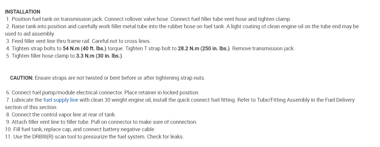 One more note of great value. When you have a crank / no-start on a Chrysler product, and you do have spark, but you don't hear the fuel pump run for one second when turning on the ignition switch, try banging on the bottom of the gas tank. Sometimes it works better if you do that while a helper is cranking the engine, but it usually isn't necessary. Banging will jar the fuel pump's motor just enough for the worn brushes to make contact and get the motor started. From then on it will continue running until you stop the engine. The same problem will occur, perhaps the next time you try to start the engine, or it may be months before it occurs again, but ultimately the fuel pump will need to be replaced.
