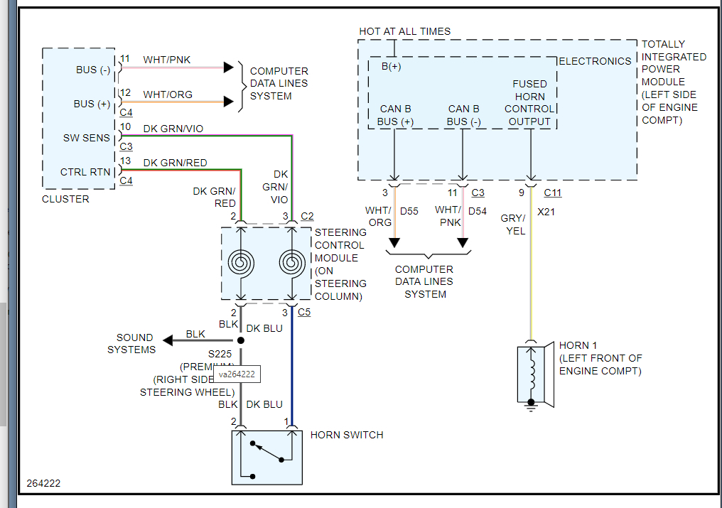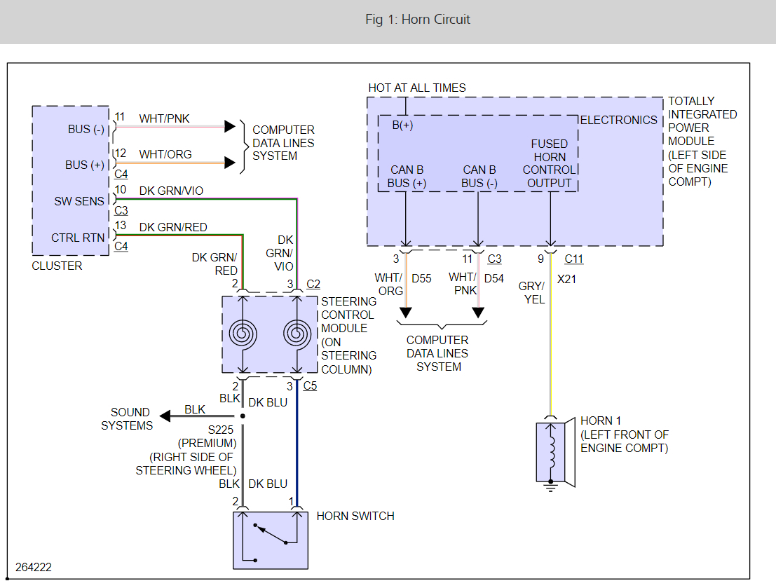 Both the horn and TIPM are common failures on this. However, to confirm this we need to monitor the cluster data with a scan tool and find out if it is picking up the button being pressed.