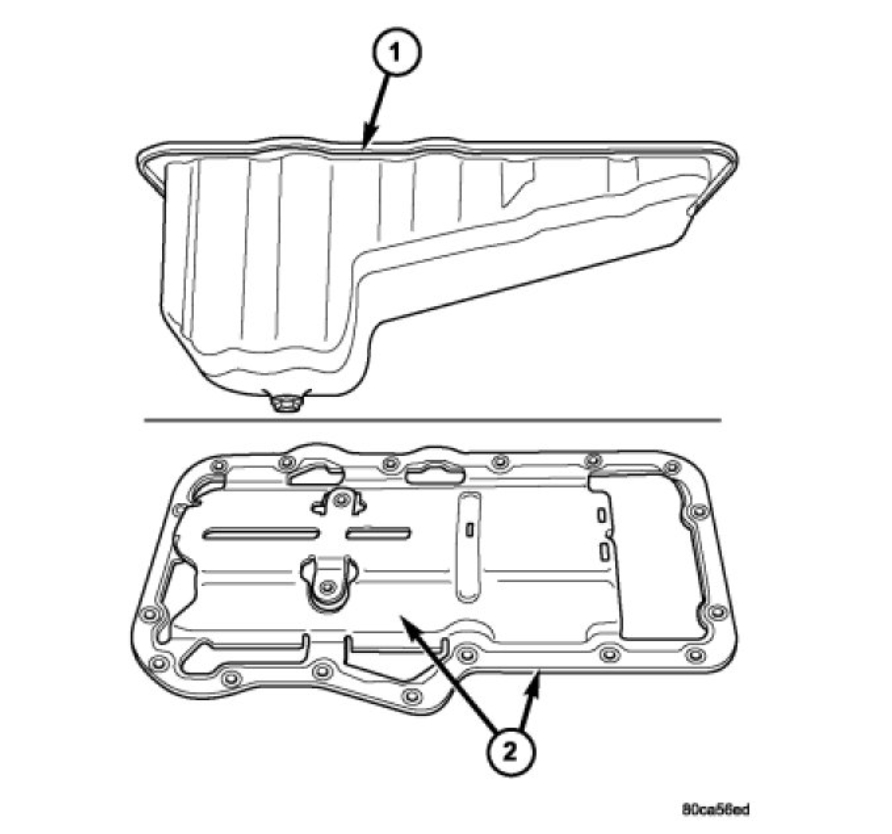 29. Separate oil pan (1) from engine.