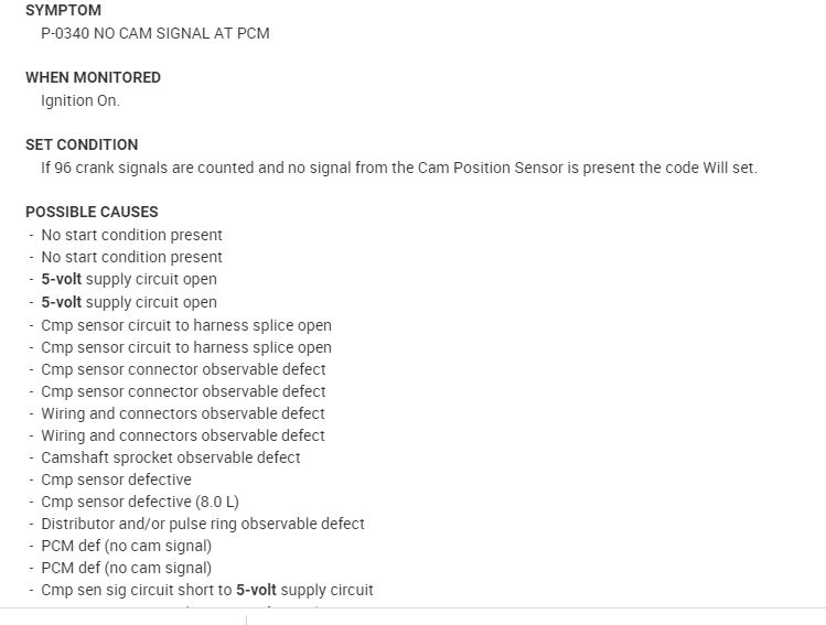 I bought the truck listed above 3500 dually with the V10. I was told the crankshaft sensor was bad. I ordered it from Red China, only place I could find one, and when it came I went to put it in and it was the camshaft sensor which was missing. So I ordered the camshaft sensor from Red China.