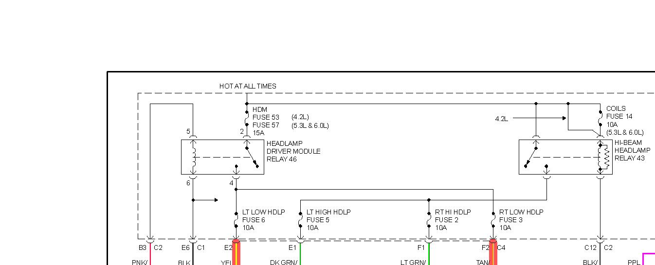 -Check fuse 53/57 15amp and the headlamp driver module relay-