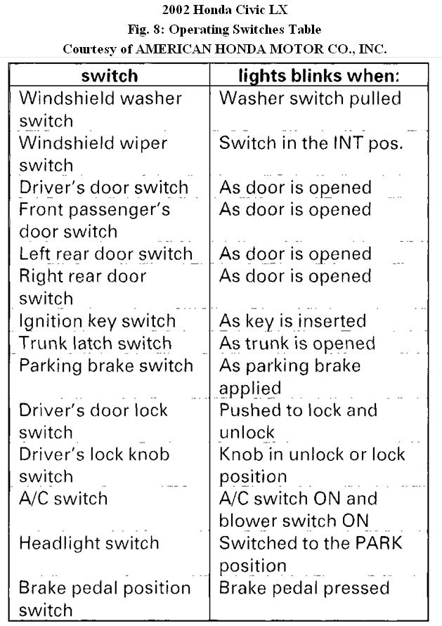 3. Operate the switches listed below. If the circuit is OK, the spotlight and ceiling lights will blink once. If the circuit is faulty, the lights will not blink.