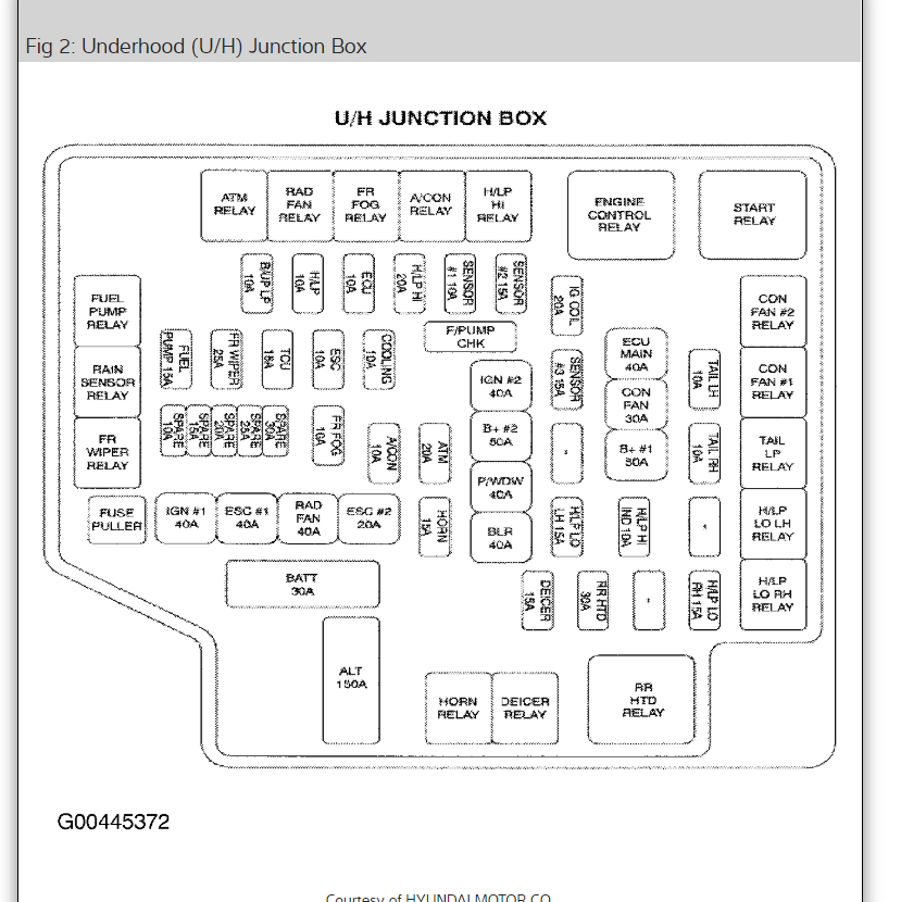 +1 for Gary. Wanted to post thanks and also on 2009 Santa Fe RHD this fuse is located under the bonnet/hood not inside. Hope this helps someone.