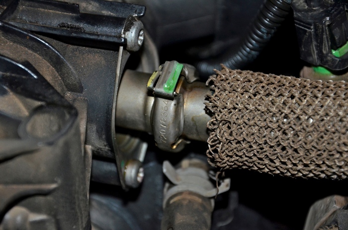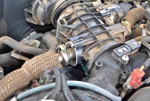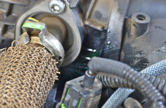I have located an area where the coolant spurts out of my landrover discovery 3 . After examining everywhere and putting a blue dye into the coolant, just to see, I noticed that when I accelerate, it spurts out of an area near the top of the engine. It looks like maybe a gasget or something?